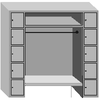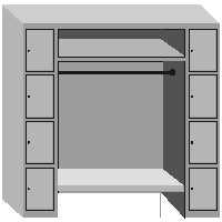 Tetszés szerint bővíthetők. Elektrosztatikusan pórszórt felület, RAL 1015 beige, Választható rekesz szélességek: 250 mm, 300 mm, 400 mm. Választható: kalaptartó, cipőtartó. Vállfatartó szélességek: 600 mm, 1000 mm, zárt hátfallal, hátlap nélkül. Külön zárható rekeszek. |